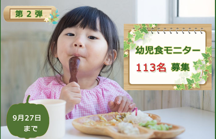 10月5日(月)~10月9日(金)の間の平日に、お子さんと一緒に幼児食(オムライス・カレードリア・豆腐ハンバーグ全種類)を体験し、10月11日(日)までに体験後アンケートに回答してください。