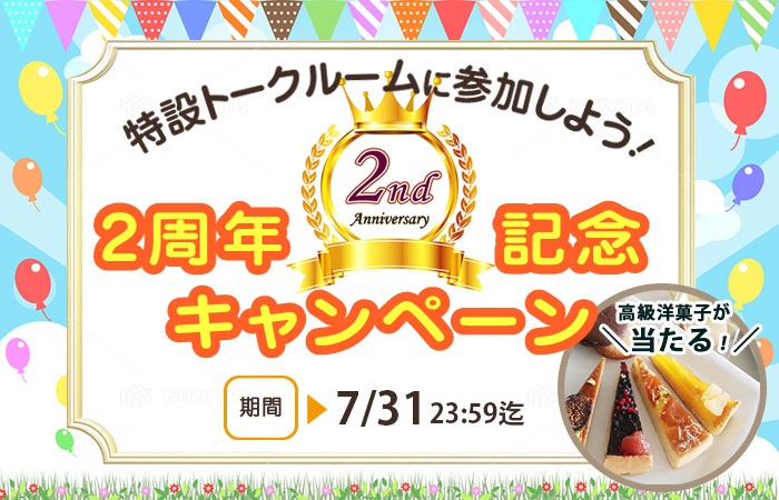 2周年特設トークルームを開設しますので、「公式テーマ」①②へのコメント投稿、もしくは2周年にまつわるフリートーク(<期間限定>特設トークルームへテーマを立てる または コメント投稿)にて、参加してください☆