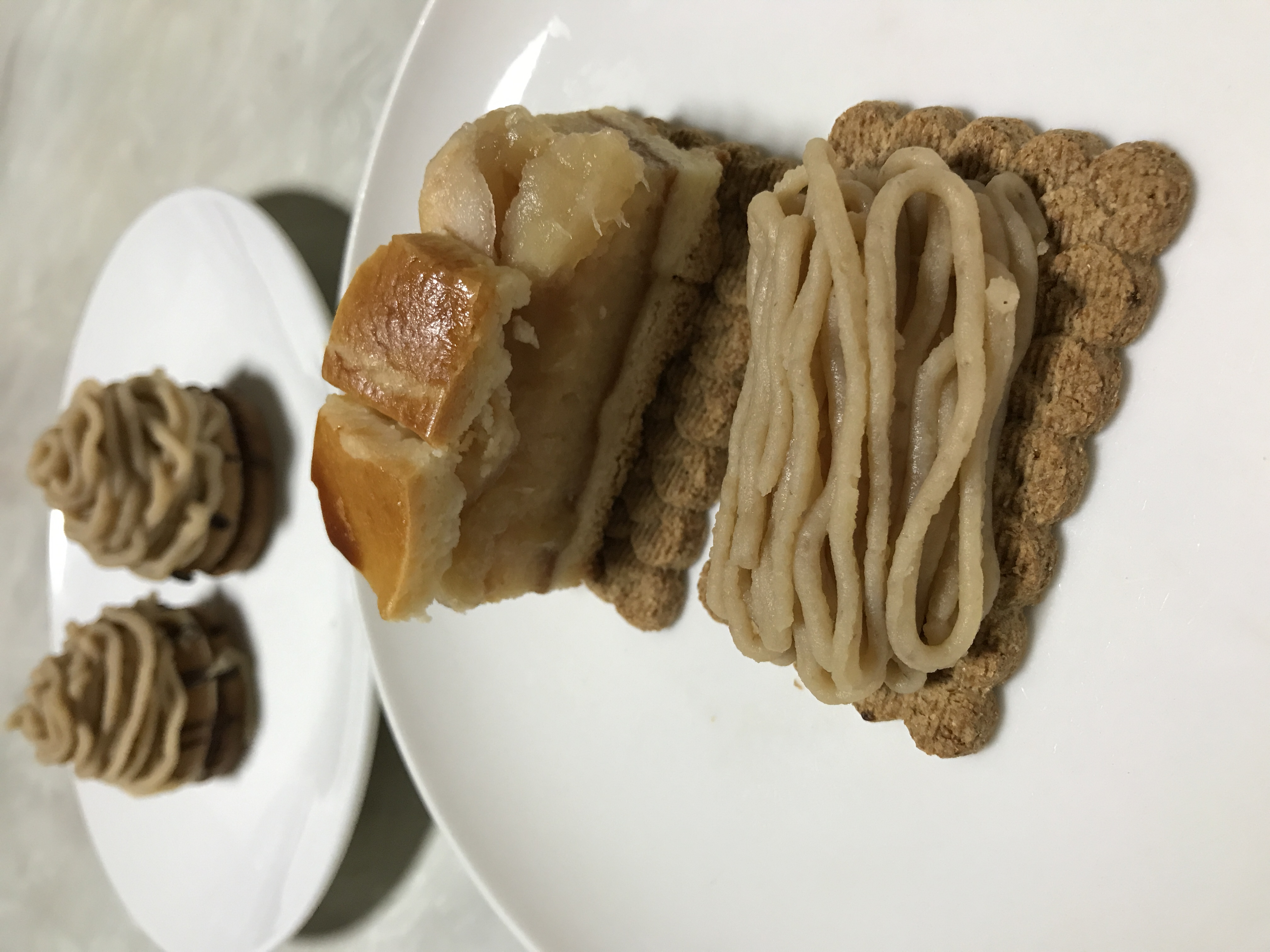栗とりんごの季節なので、栗クリームとアップルパイを作り、ジェルブレにトッピングしてみました。