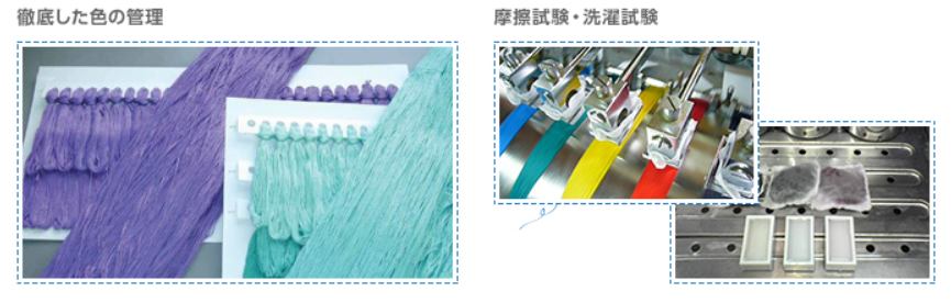 熟練の技術による秘伝のブレンド染料と職人技が光る特殊加工により、色あせ・色落ちしにくく、462色の色数を可能にしました。
