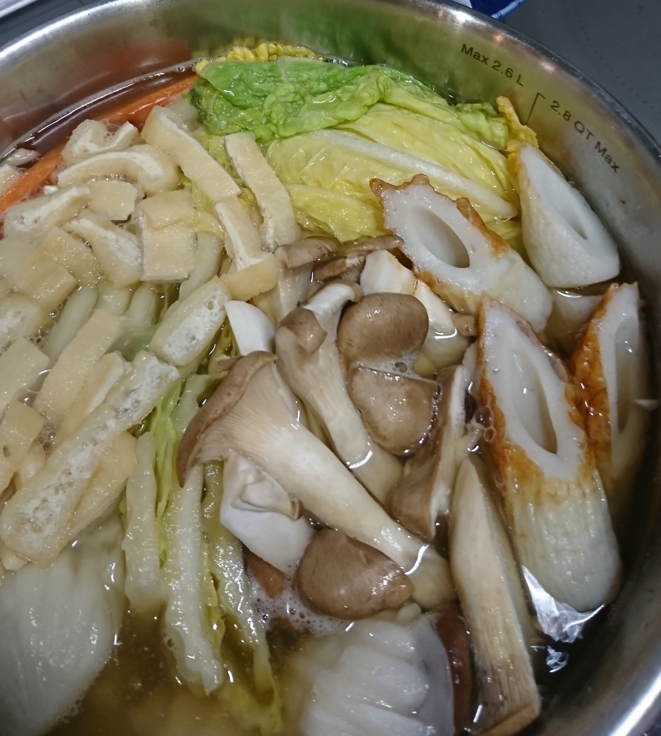 ①塩ちゃんこ鍋(活ちくわ)②夕食③お鍋に入れると、お魚の旨味...